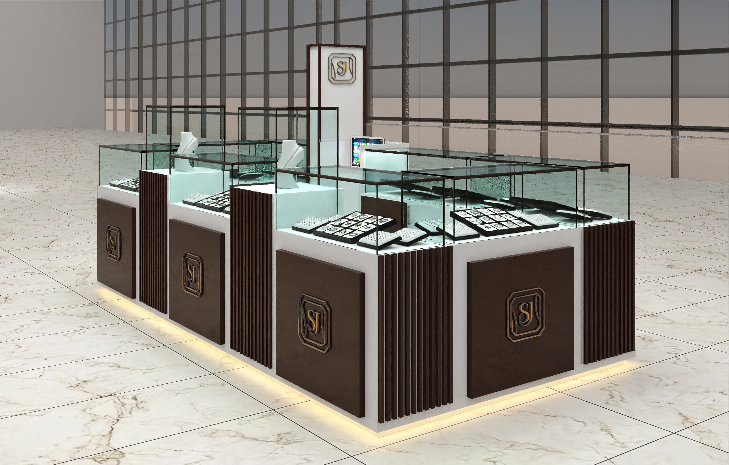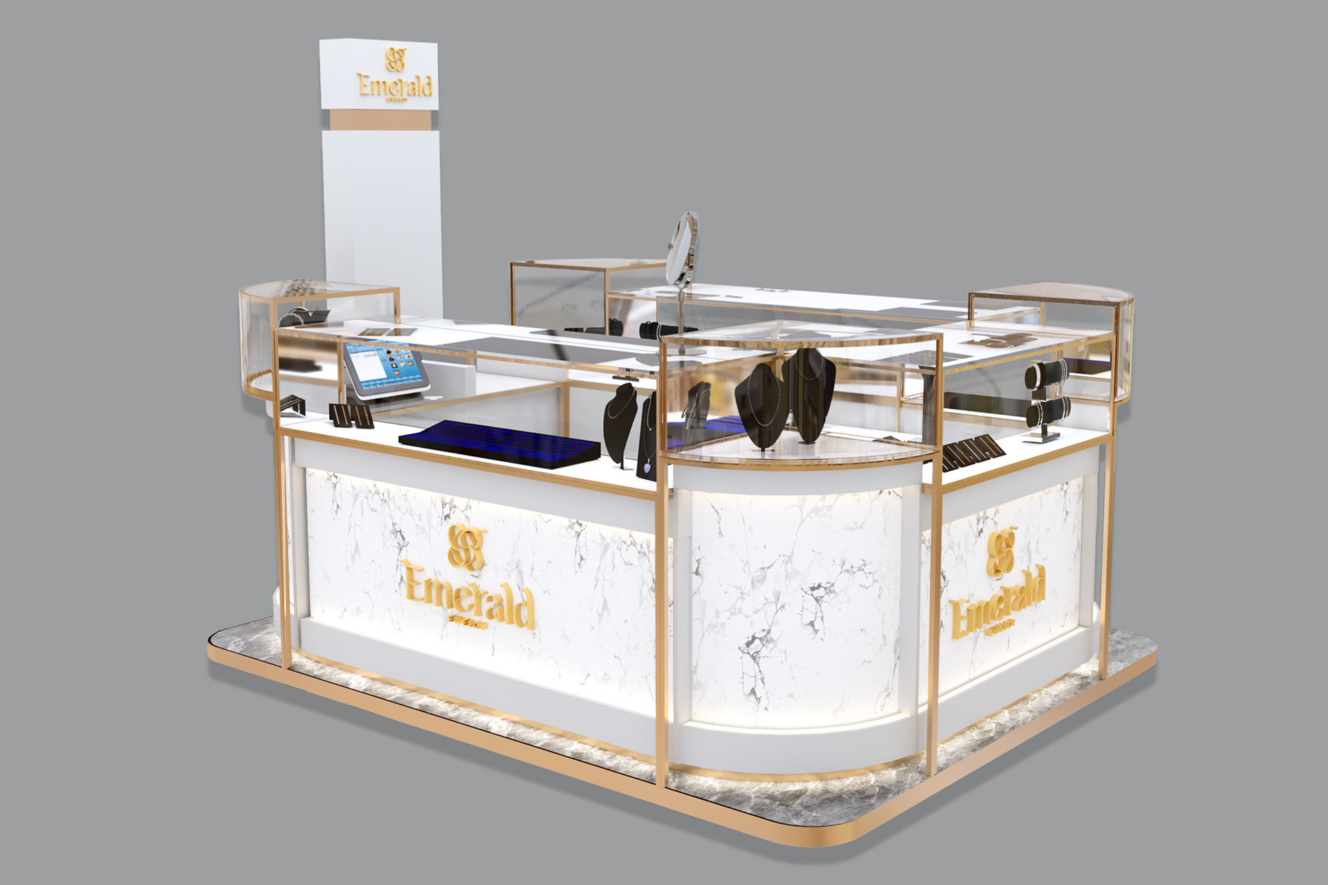 Elegant Design: Our kiosks are crafted to showcase your jewellery beautifully, combining aesthetics with functionality.